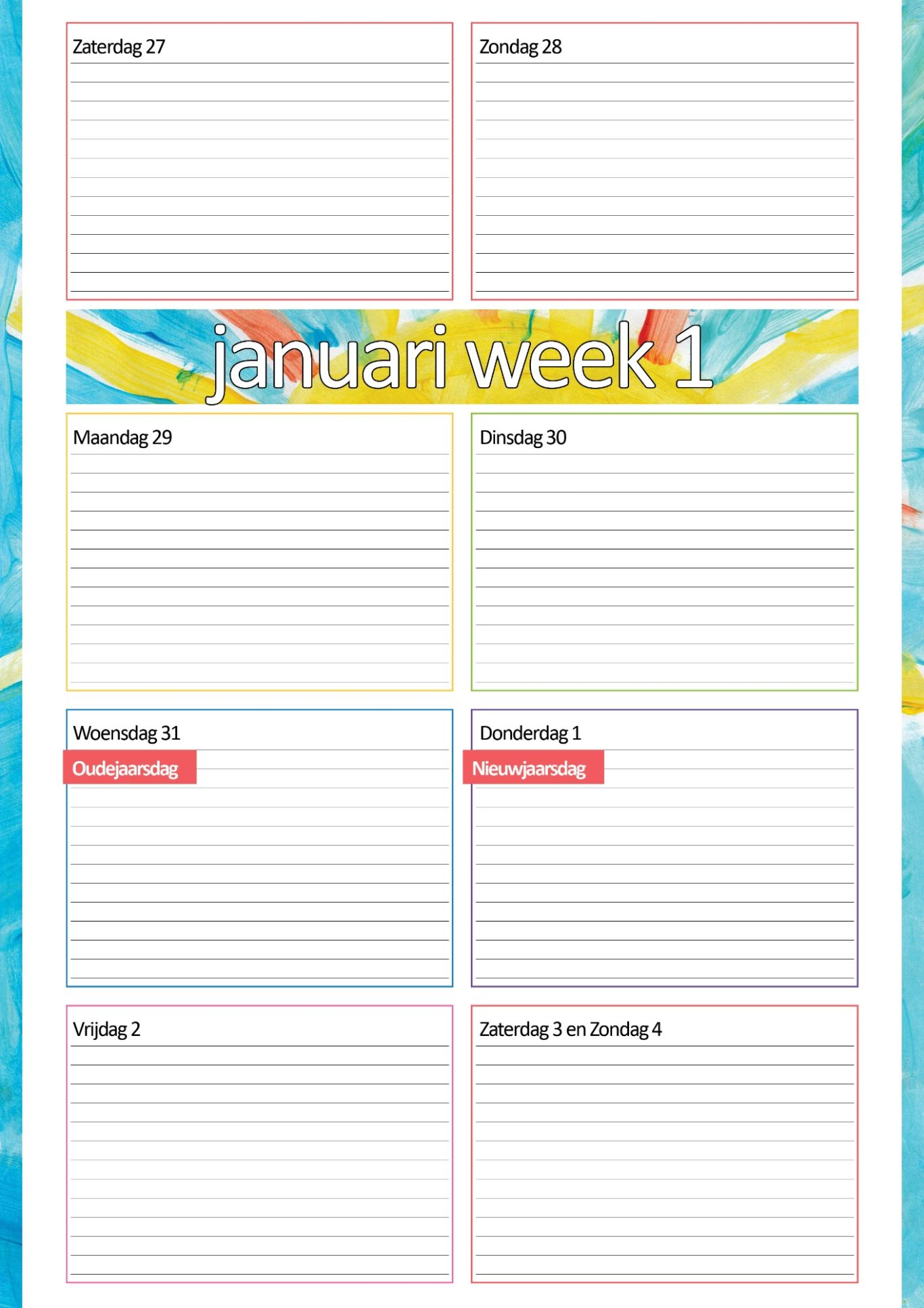 Overzichtelijke dagindeling op A4-formaat